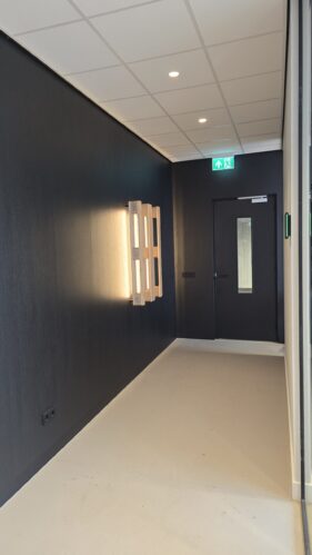 Voor dit atrium, de gangzones en de overige algemene ruimtes hebben wij het lichtplan mogen maken. In het atrium wilden ze graag enkel ringlampen plaatsen en aangezien het zorginstelling is, moet dit ook aan specifieke lichttechnische eisen voldoen. We hebben hier gekozen voor speciale op maat gemaakte ringlampen met een hoog rendement, waardoor het er niet alleen heel gaaf uitzien, maar er ook voldaan wordt aan de gestelde eisen. De gangzones zijn uitgevoerd met in- en opbouw armaturen met een step-dim functie. De verlichting brandt dan standaard op 10%, maar gaat bij beweging naar 100%. Hierdoor wordt er een behoorlijke besparing gerealiseerd. Uiteraard zijn de armaturen ook uitgevoerd met een nood-unit.