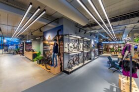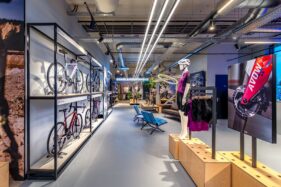 Een belangrijk onderdeel van deze beleving is de verlichting, geleverd door Spectrus. Voor de productpresentatie is gekozen voor 3-fase rails met de Emilux Linear als basisverlichting en als spot de Emilux Modena, waarmee fietsen en accessoires gericht en flexibel worden uitgelicht. Dankzij de hoge Ra-waarde van de armaturen komen de kleuren van de fietsen en accessoires optimaal tot hun recht en wordt de kwaliteit van de producten extra benadrukt.
