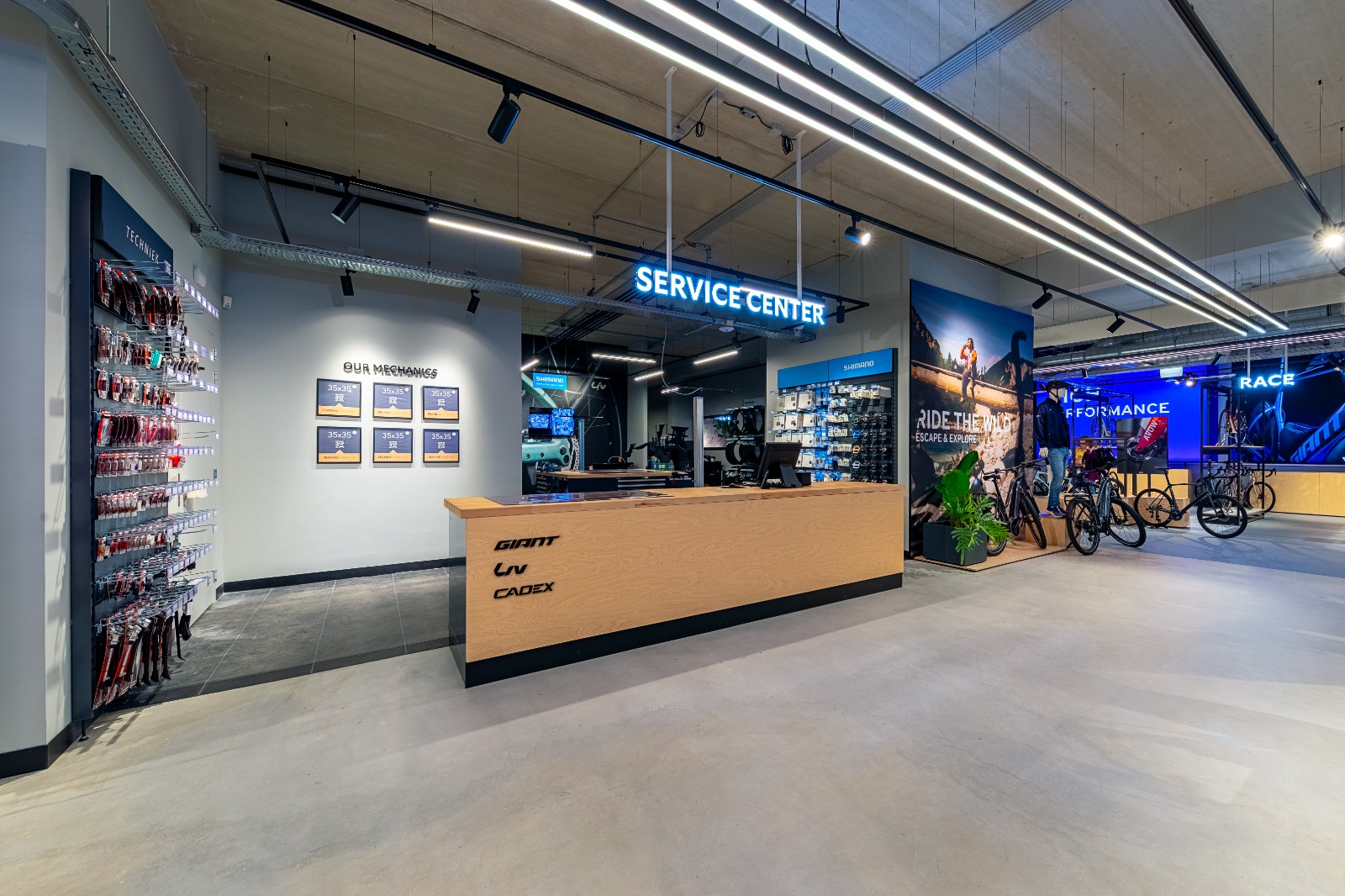 De afgelopen periode is er, in samenwerking met Giant Benelux, hard gewerkt aan de realisatie van deze nieuwe store. Het interieurconcept is gebaseerd op een ontwerp, dat later in het traject door hen verder is doorontwikkeld, gerealiseerd en begeleid in opdracht van de Giant-organisatie. Voor de verlichting is de expertise van Spectrus ingeroepen.